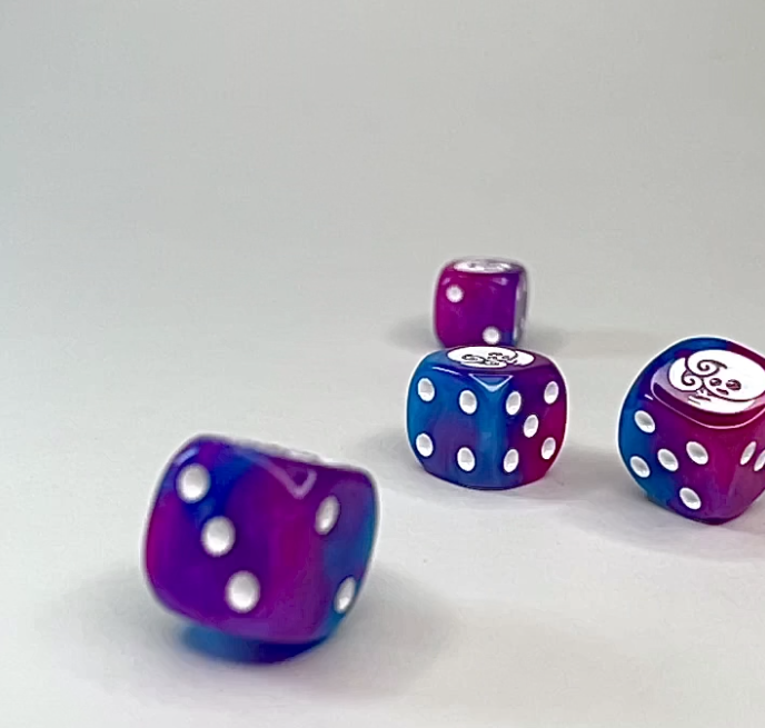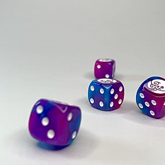 I named the colour "Bluemarble Dragonfruit" – a pearlescent blend of bright blue and pink. It sounds delicious, but do not eat the dice!